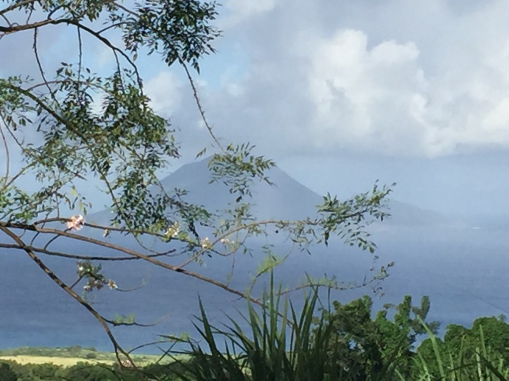 I had a lot of fun cluing this one, so get ready to think outside the box, laterally, creatively, or whatever other way lets you grok my machinations. (The picture above, of 25 Down, was taken while hiking up Mount Liamuiga, which was a muddy and merciless slog over rocks and fallen logs; our guide rewarded us at the end with … thin sandwiches containing one slice of American cheese on white bread.)