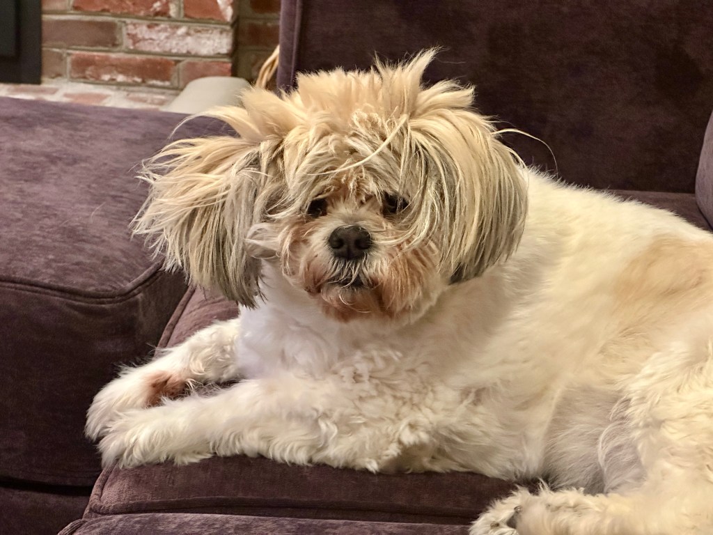 Mia after a nap spent chasing chipmunks in her dreams